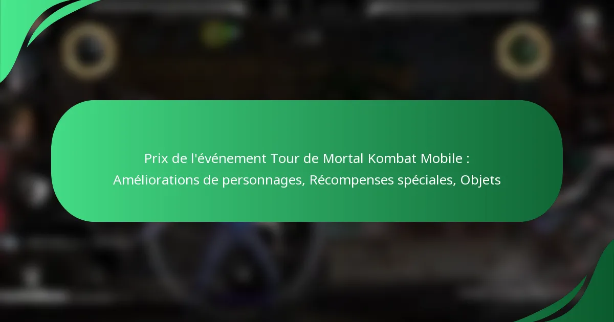 L’événement Tour de Mortal Kombat Mobile propose une variété d’objets qui améliorent les améliorations de personnages, fournissent des récompenses spéciales et incluent des objets rares. Les joueurs peuvent gagner ces objets en participant à l’événement, ce qui impacte considérablement le gameplay et le développement des personnages.